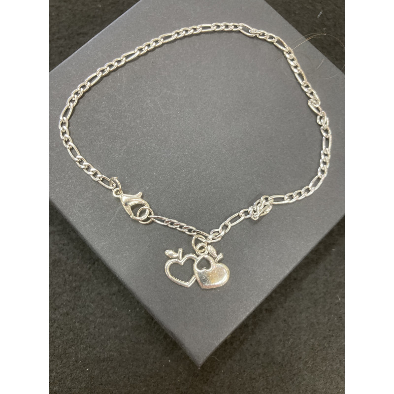 An anklet for any occasion. Two apple/hearts on a stainless steel chain.