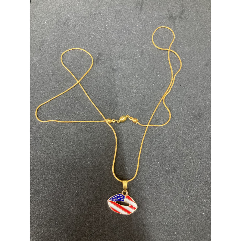 Red, White and Blue themed 24" necklace with charm & magnetic clasp.