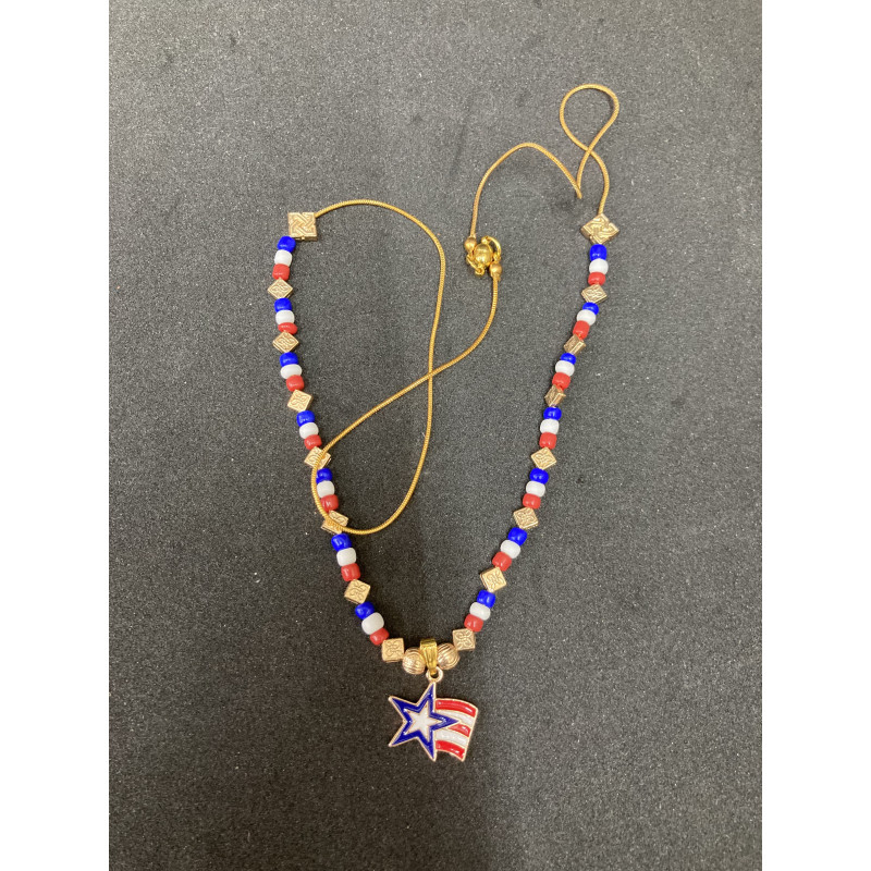 Red, White and Blue themed 24" necklace with charm & magnetic clasp.