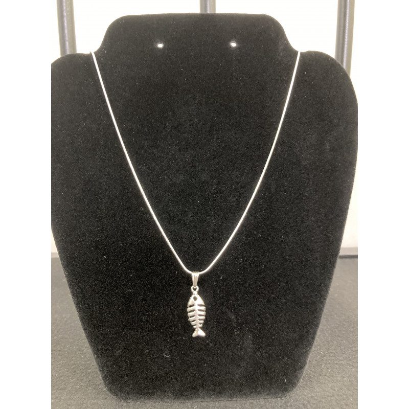 21" Silver plated round snake chain necklace with pendent and lobster clasp.