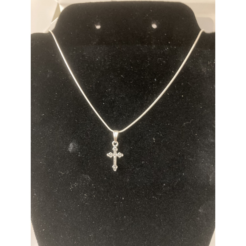 21" Silver plated round snake chain necklace with pendent and lobster clasp.