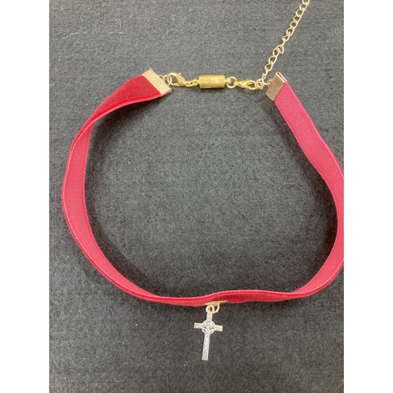Velvet collar, adjustable, with magnetic clasp.