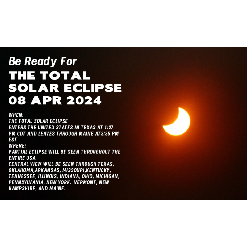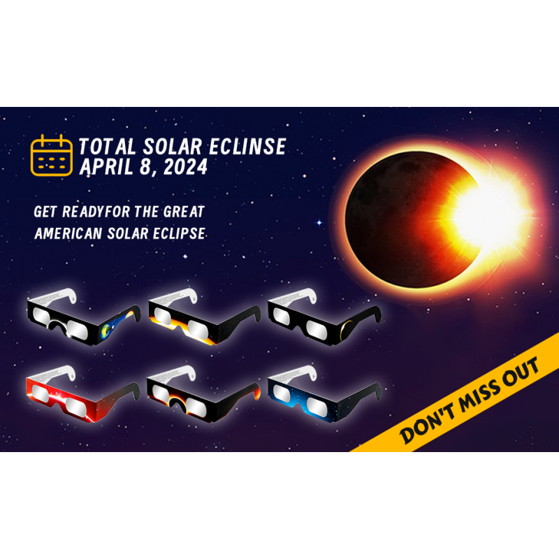 - 2024 TOTAL SOLAR ECLIPSE - The once-in-a-generation Total Solar Eclipse will appear on April 8th 2024. Get ready for it with our solar eclipse galsses.