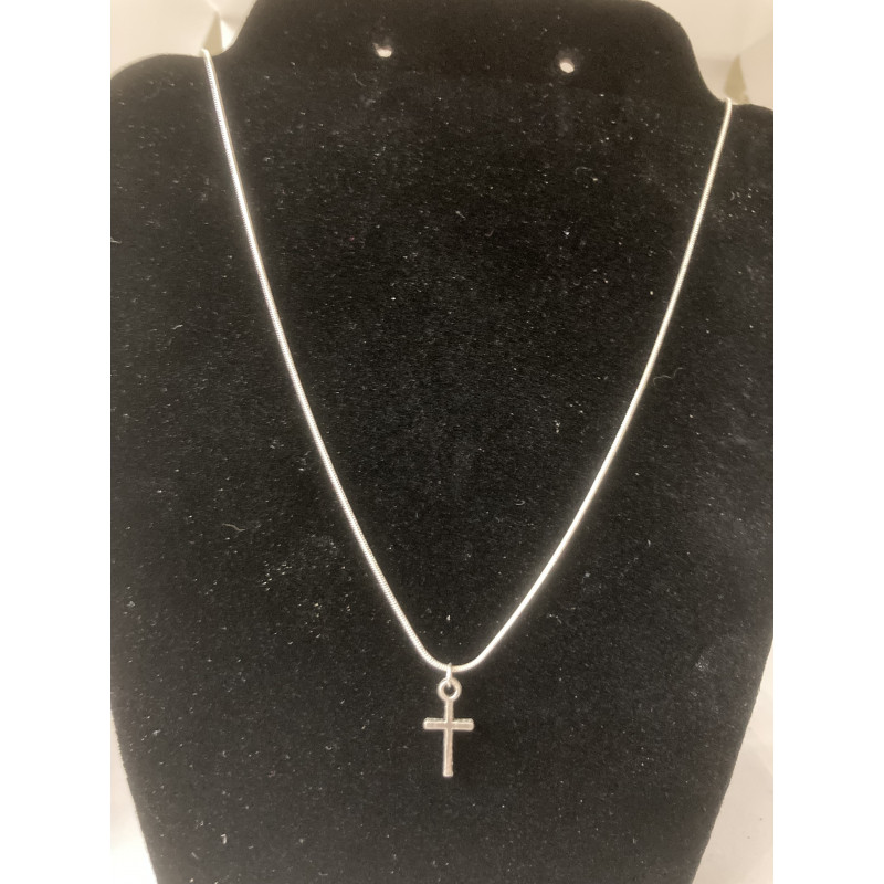 21" Silver plated round snake chain necklace with pendent and lobster clasp.